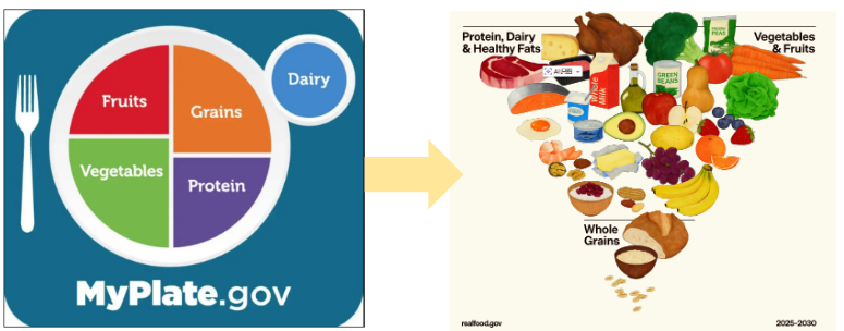 图源:Dietary Guidelines for Americans,2020-2025(左);Dietary Guidelines for Americans,2025-2030(右)